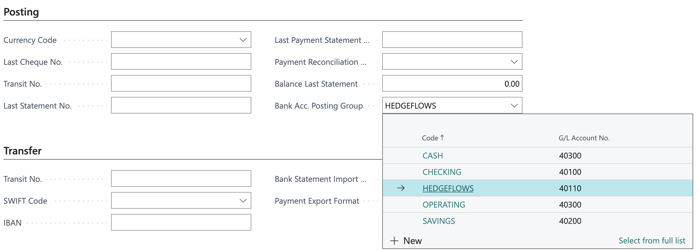 Next, Select Posting Group for HedgeFlows in Posting > Bank Acc. Posting Group: