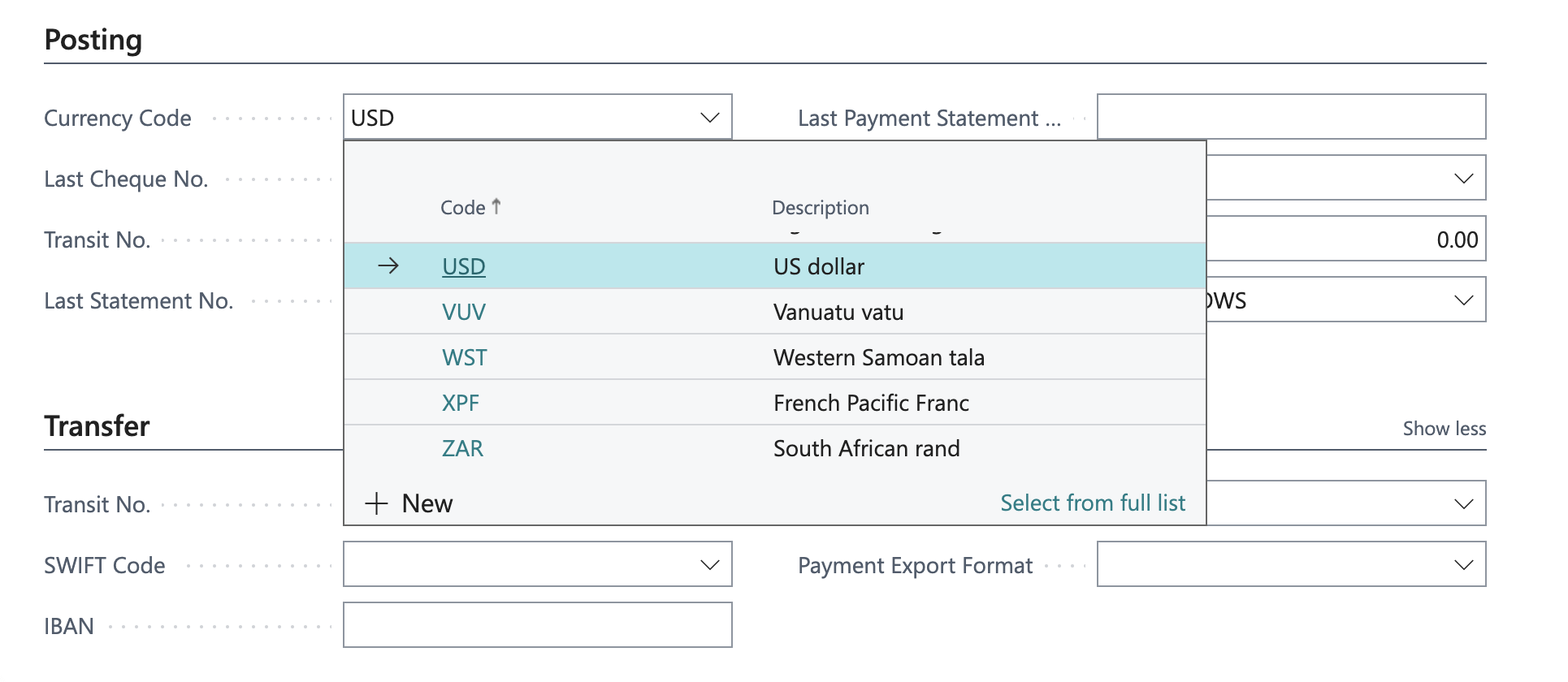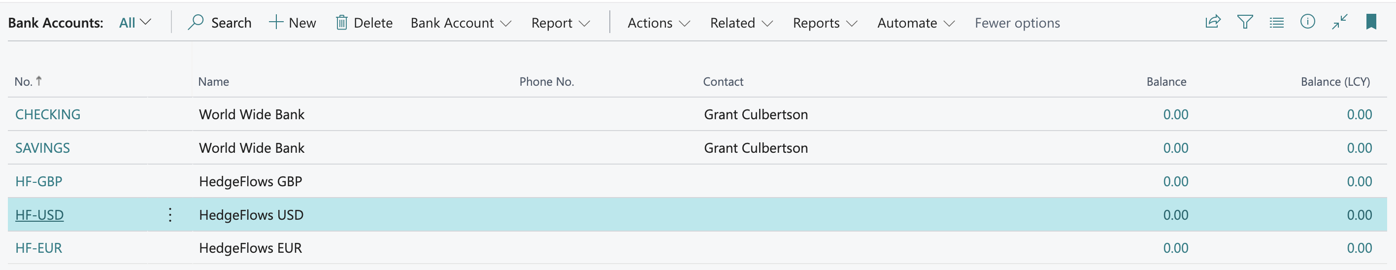 Complete this process for all currencies you wish to have Bank Accounts for in Business Central: