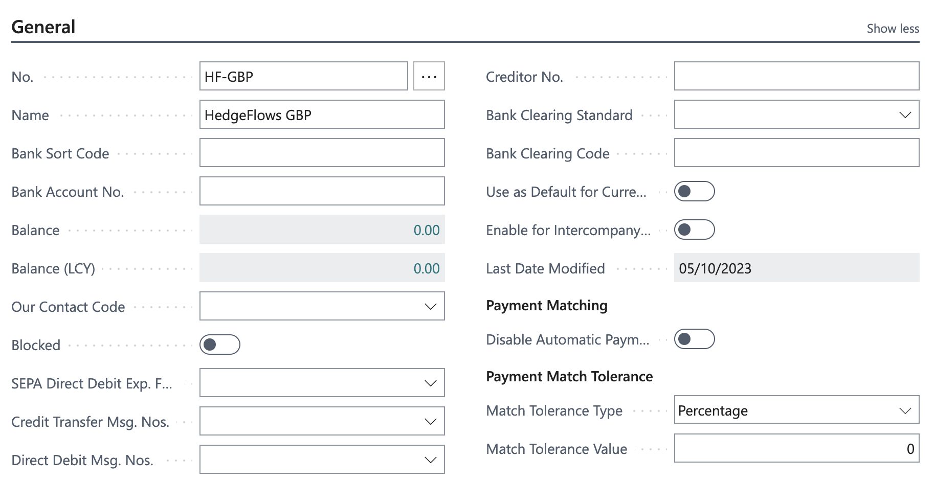 The following step must be implemented by experienced Dynamics Business Central users. If in doubt, please contact your accounting specialist or Microsoft consultant to assist with this process. HedgeFlows support team can provide assistance with technical integration issues but can't provide guidance on accounting treatment or company specific set up in Business Dynamics.