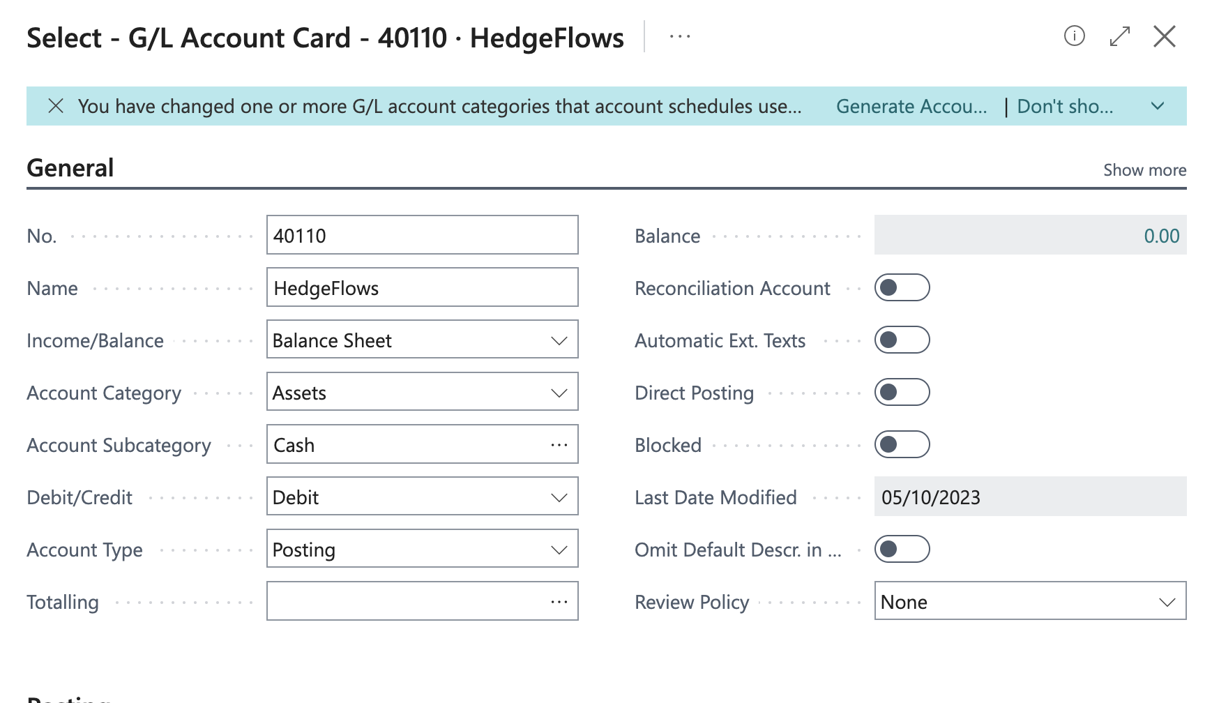 2) Create a G/L Account for HedgeFlows